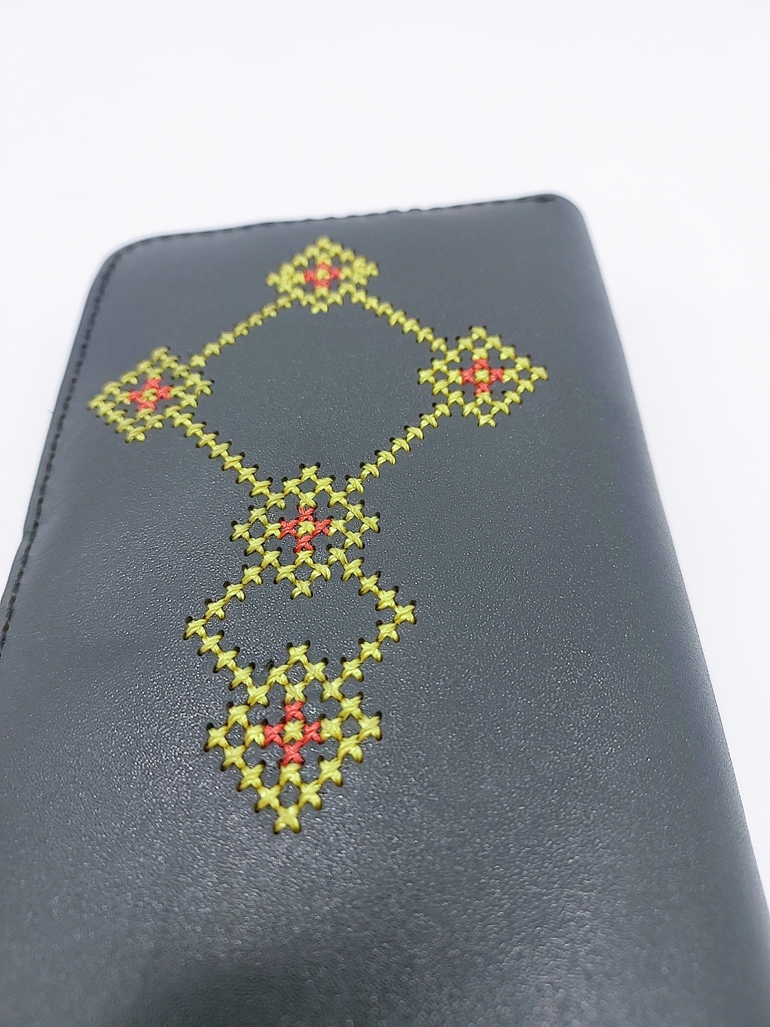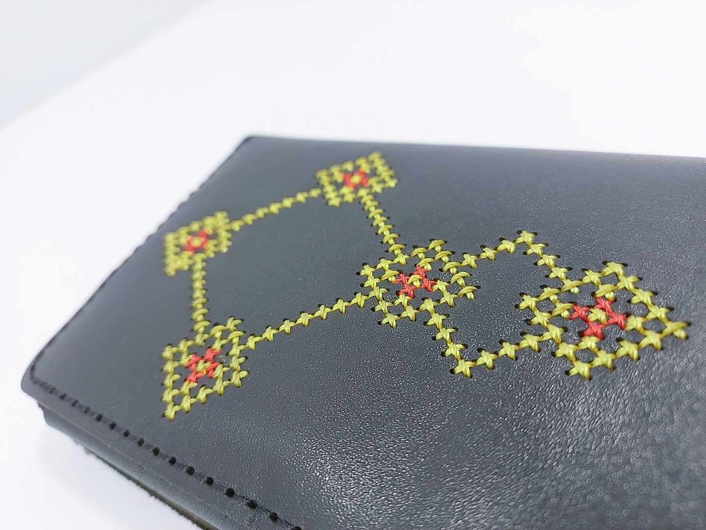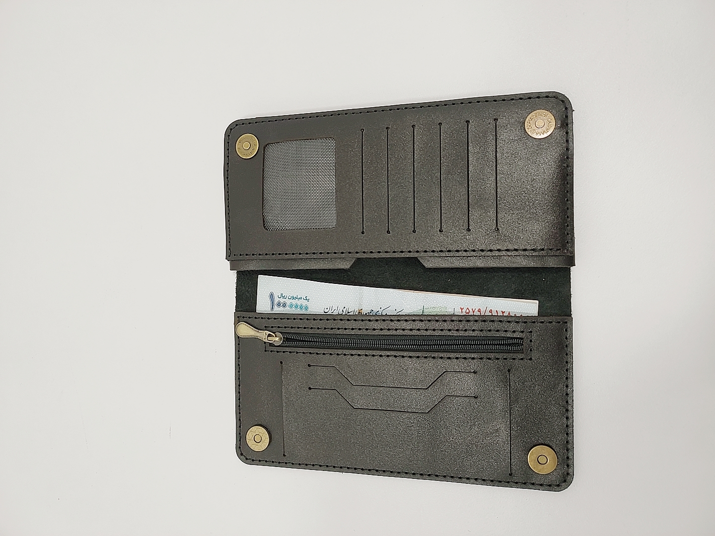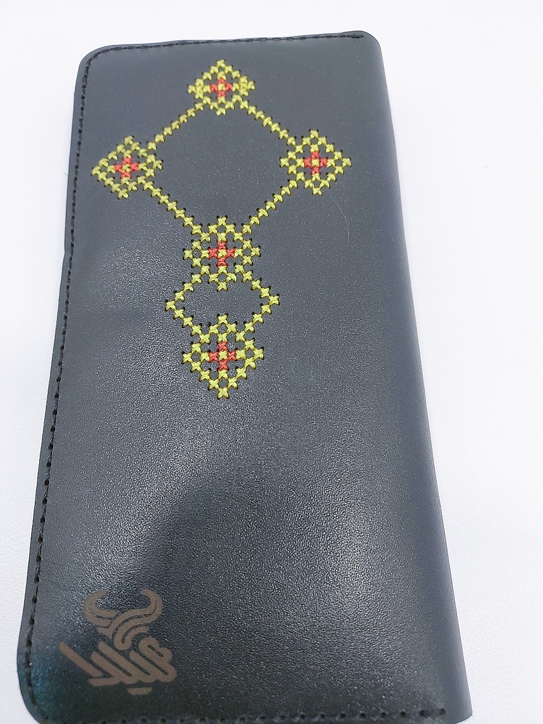 کیف پول کتی چرم دست دوز مدل کیهان طرح شماره دوزی گل ناز